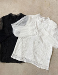 | 製品名: | 『 激レア販売。春夏伝説神レースのシアー袖版! 』プリーツチュールシアー袖レースブラウス |