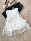 オーガンジーの素材感・透け感が絶好調!天竺xオーガンジードッキングフリルトップス
