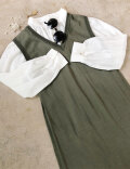 | 製品名: | レイヤードにちょうどいい!落ち着いたカーキカラーの薄手ニットVネックワンピ |