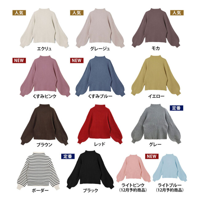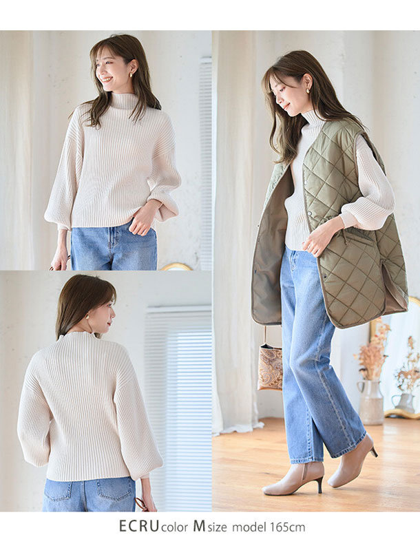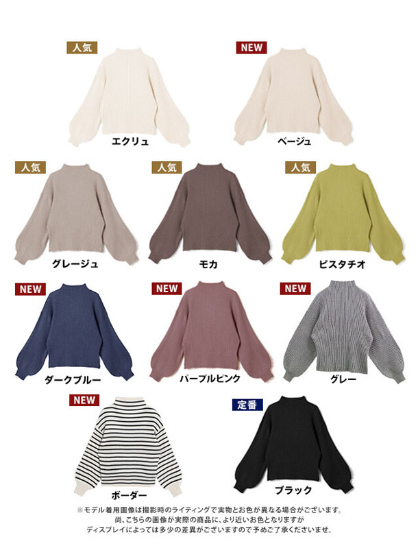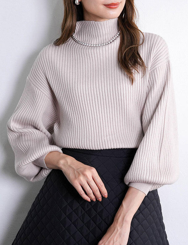 『 インスタサブ垢で大バズり! 』 ぽわん袖もちもちリブニット。ボリューム袖とボトルネックが毎年人気のニット登場!