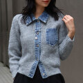デニム切替ニットカーディガン
