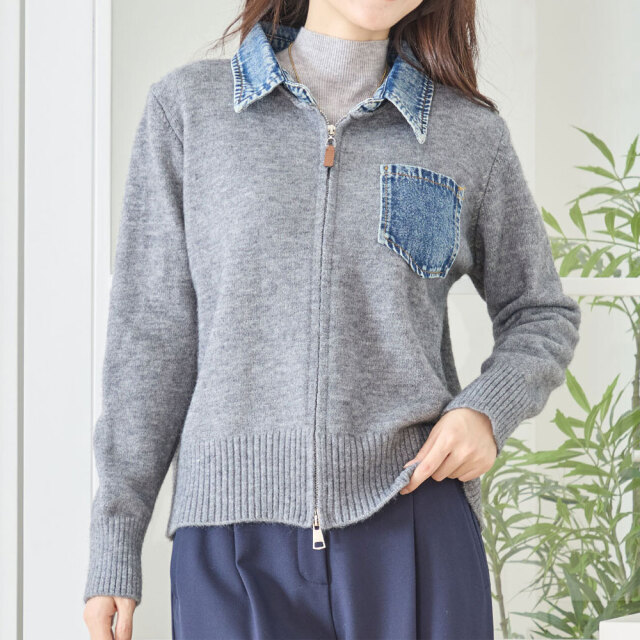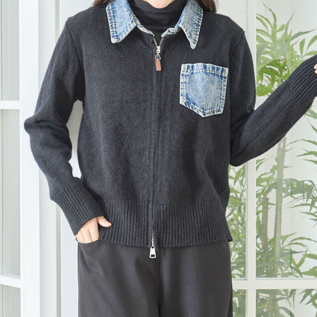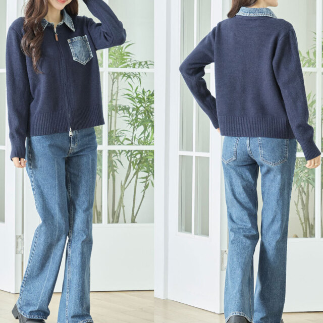 new デニム切替ニットカーディガン