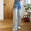 ハートプリントの色抜きワイドデニムパンツ。ハートプリント色抜きデニムパンツ登場!