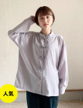 フロッグボタンが可愛らしいブラウス。 さらっとした着心地いい素材の春ブラウス。