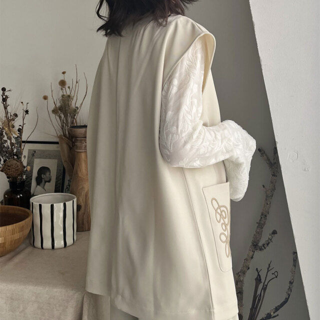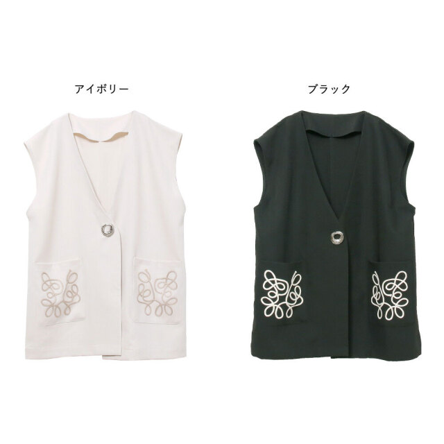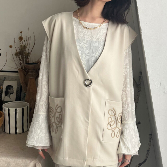 あのバズったコード刺繍シリーズの最新版登場!ブローチ付きコード刺繍ジレ