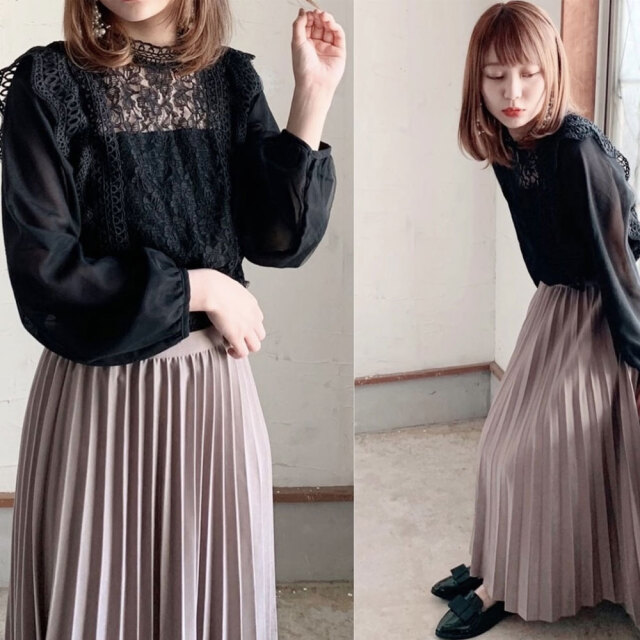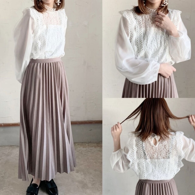| 製品名: | 一枚で女性らしさが手に入る◎レース+シフォン+チュール切替ブラウス |