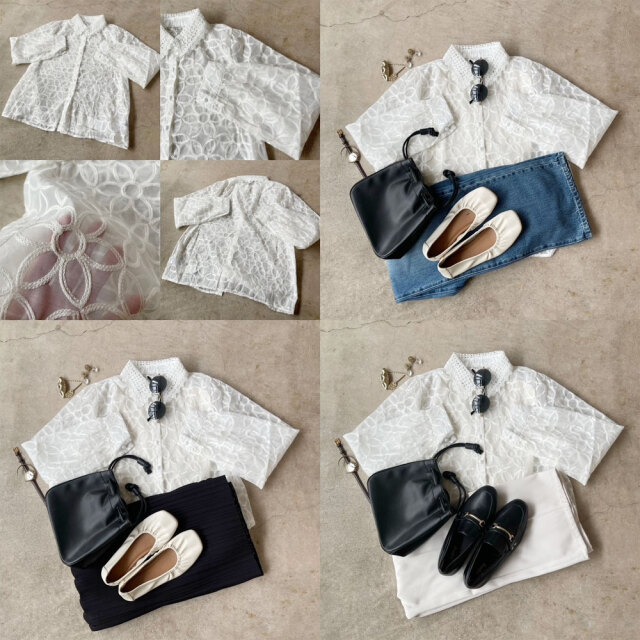 | 製品名: | 花柄オーガンジーレースシャツセット |