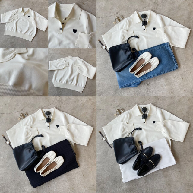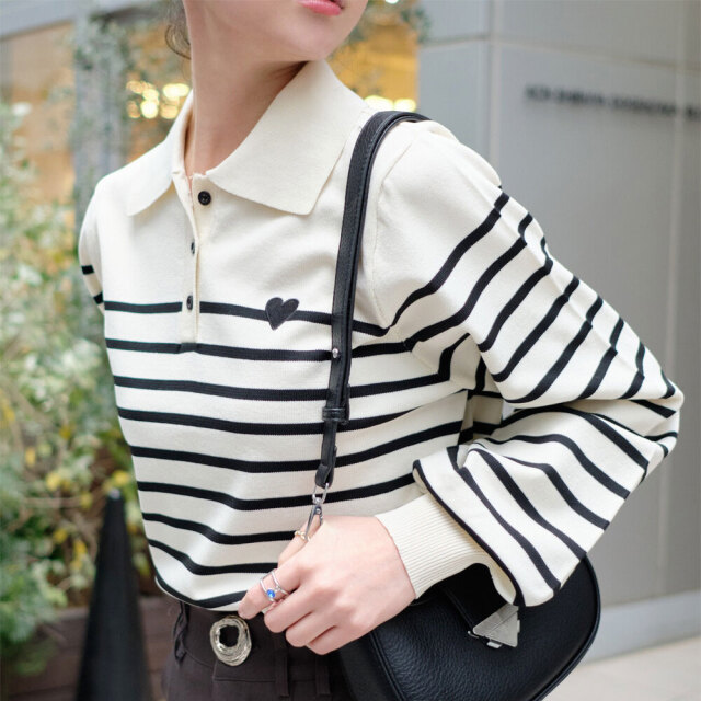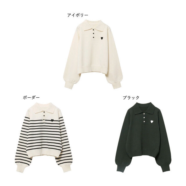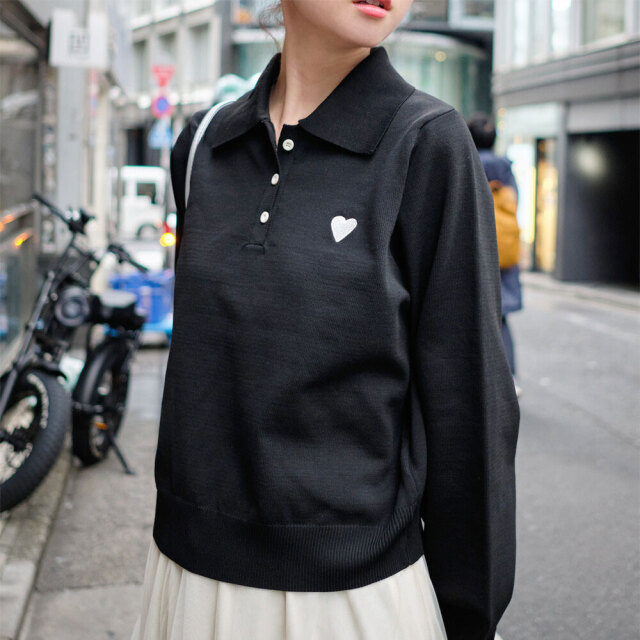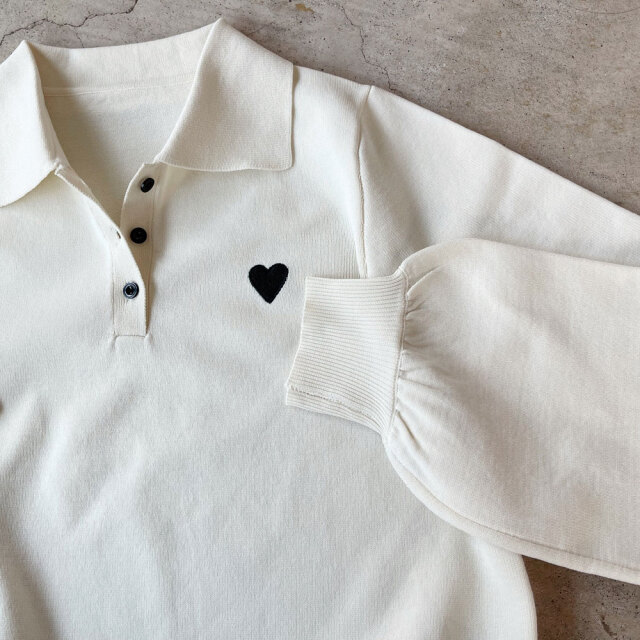 ハート刺繍スポンディッシュポロニット