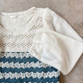 【2026新作】かぎ編みボーダー柄シアースリーブトップス