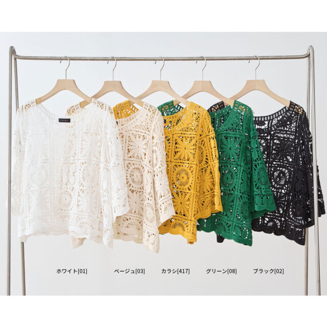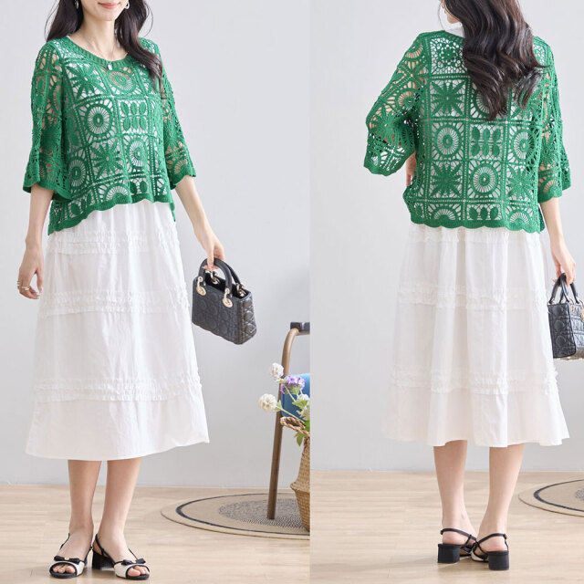 | 製品名: | サマーレース編み5分袖ニットトップス |
