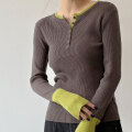 配色デザインがトレンドライクなニットトップス 配色デザインがシンプルながらこなれ感を演出してくれるデザイン もっちり肌触りのいい生地感 1枚でも存在感を出してくれスタイリングしやすいアイテムです