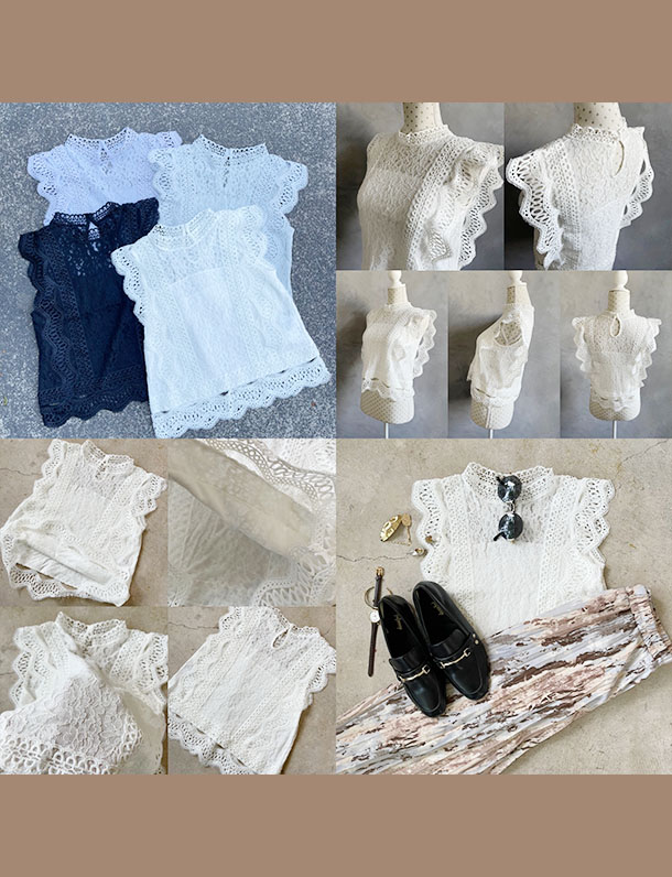 !超可愛い!【極上の人気】『 伝説神レースいよいよ本格的販売!誰もが納得する激かわデザイン! 』重ねレーステープノースリブラウス
